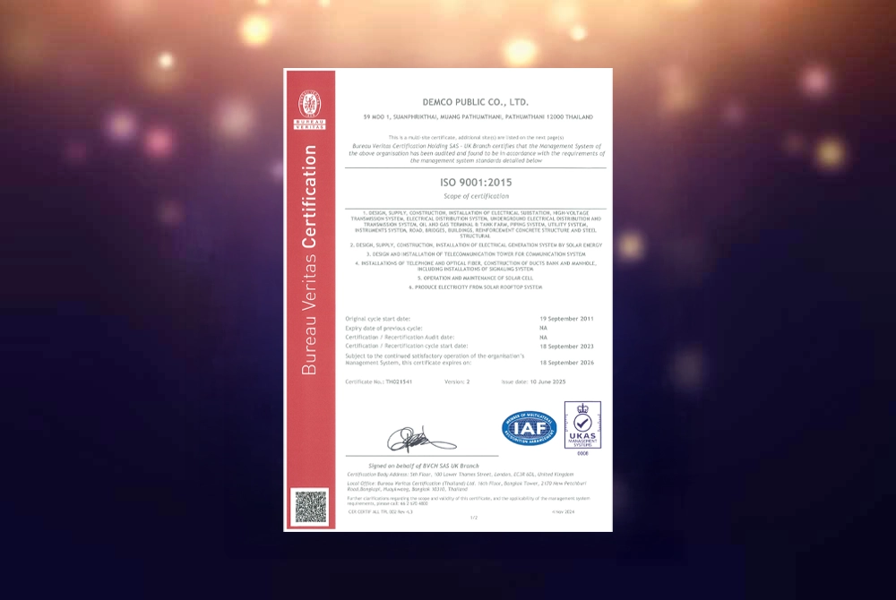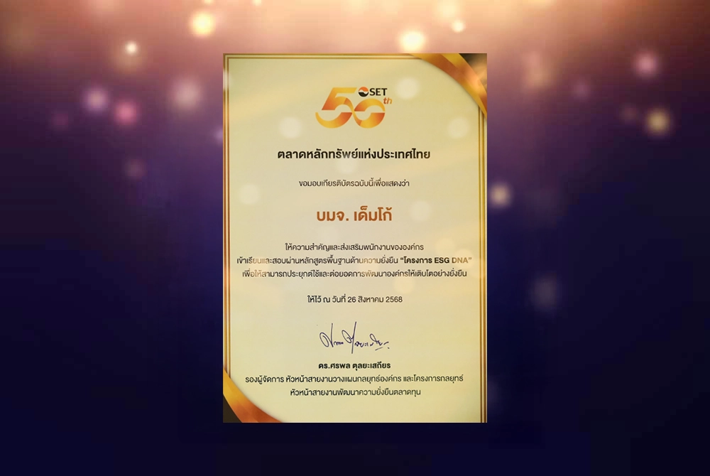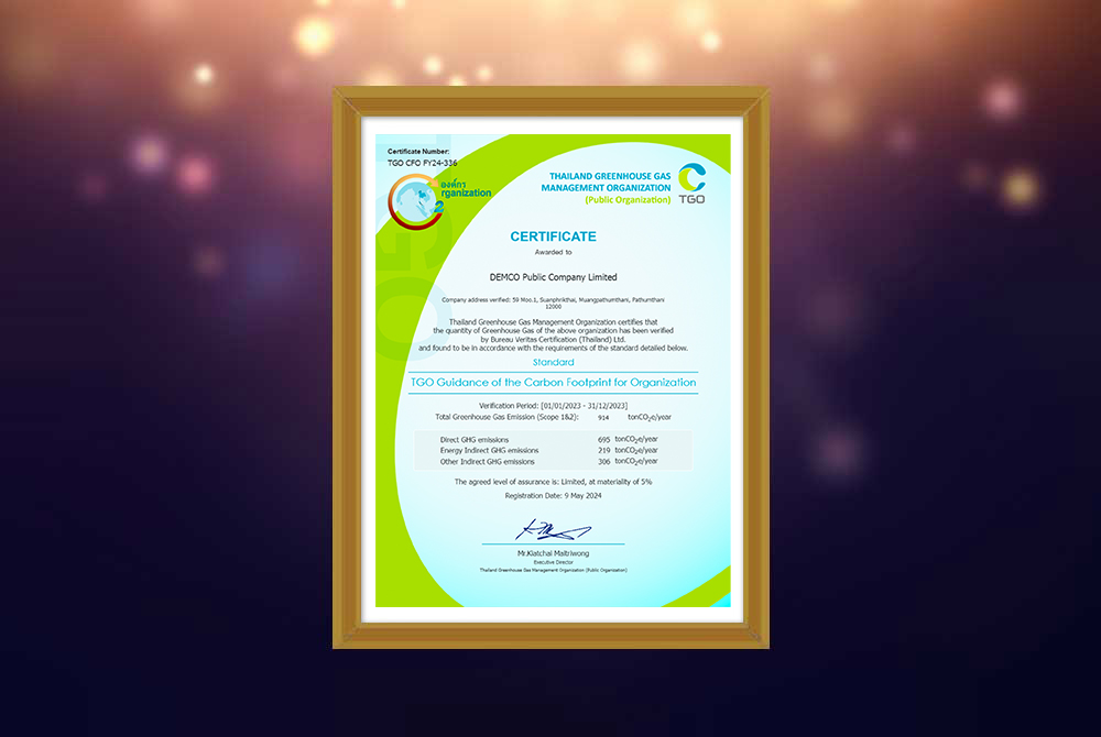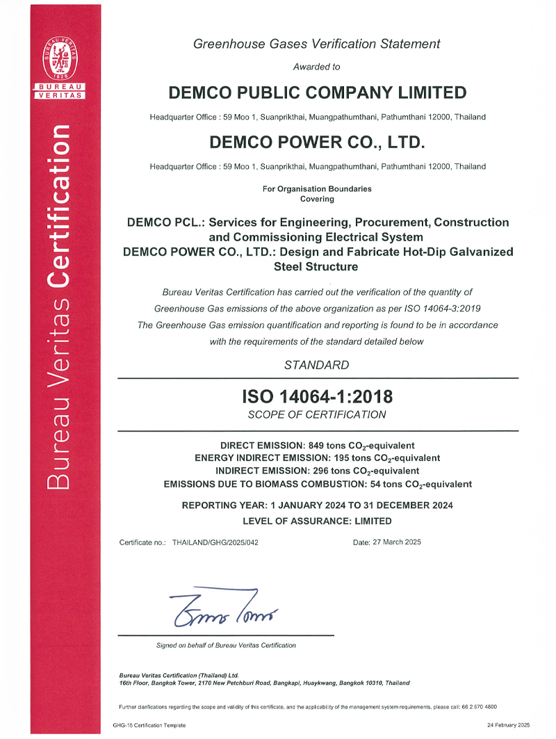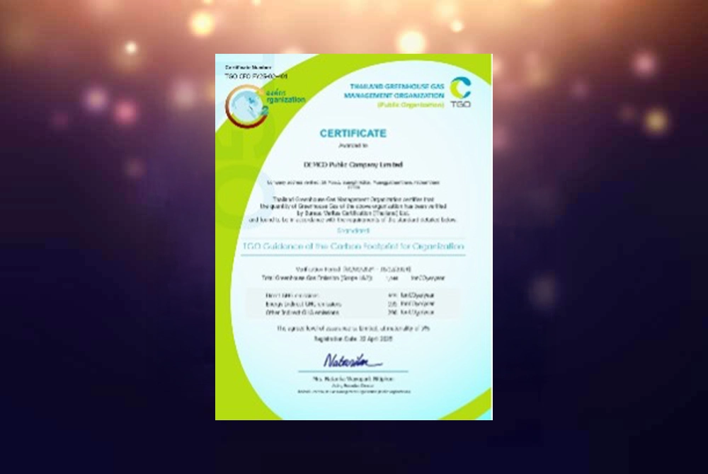 Registered as a voluntary greenhouse gas reduction project according to Thailand Standards (Standard T-VER)