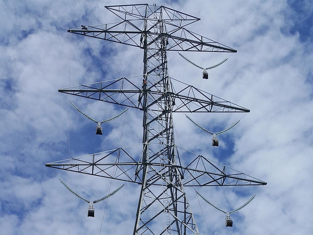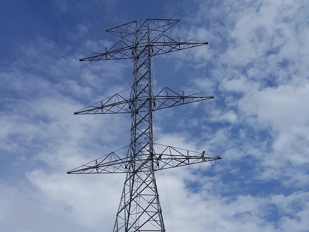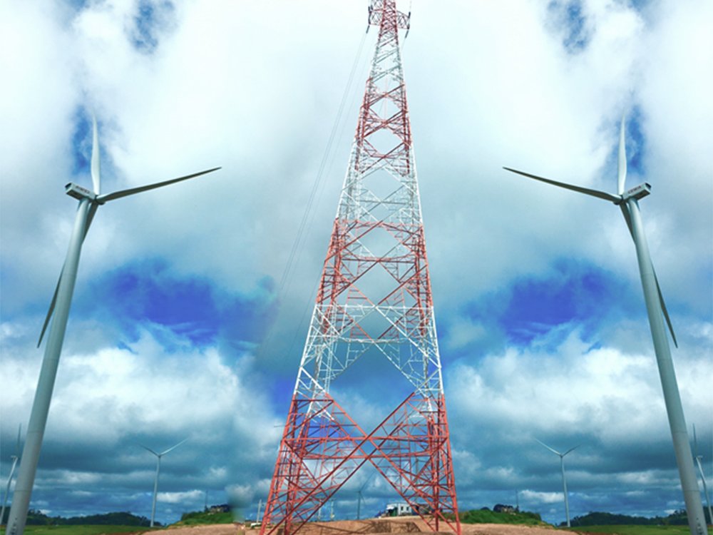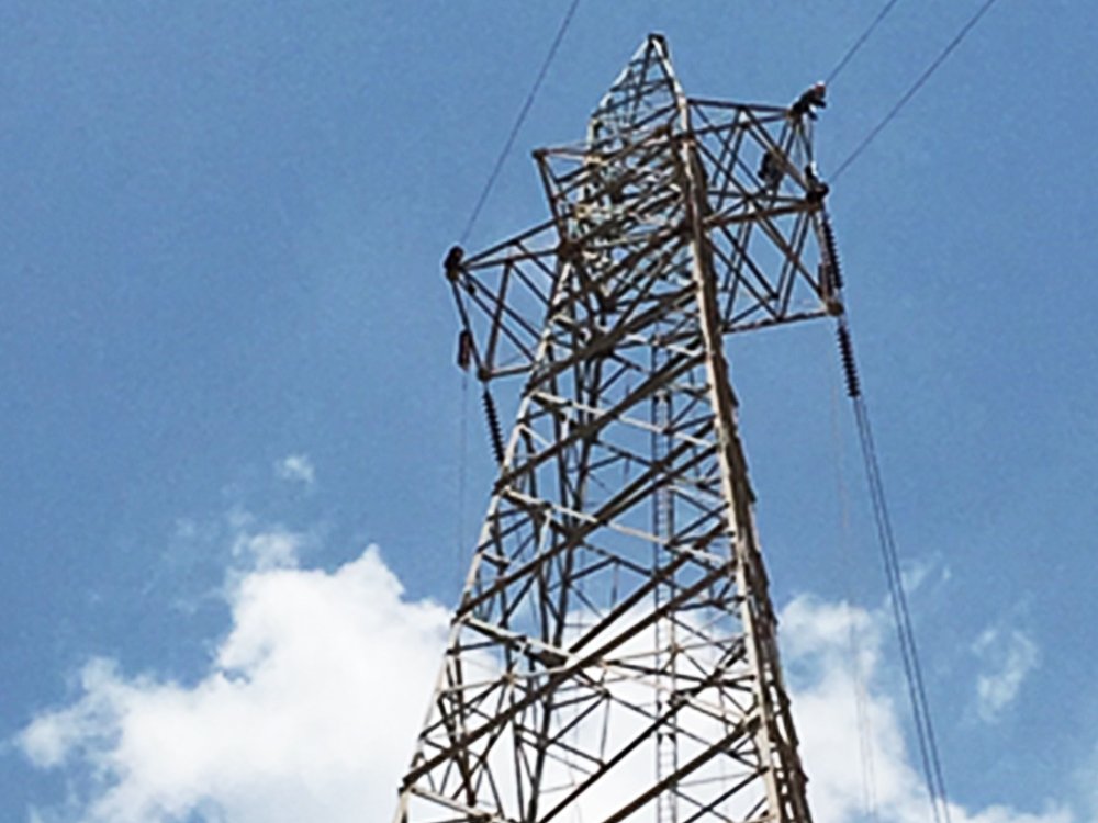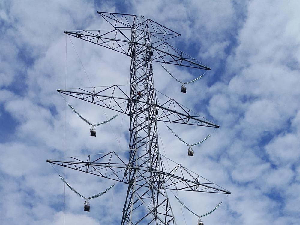 Transmission line tower construction complete wish installation of 22 kv.Distrubution system across the mekong river.