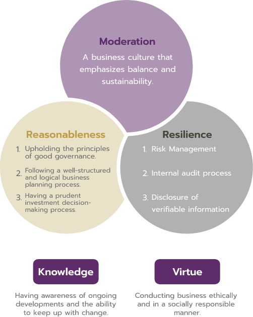 DEMCO conducts its business by embracing the Philosophy of Sufficiency Economy as bestowed by His Majesty King Bhumibol Adulyadej the Great. This philosophy guides the Company’s management approach through the principles of moderation, reasonableness, and prudent risk management, with knowledge and virtue as key conditions. With a commitment to operating based on the middle path and mindfulness, DEMCO adheres to the principles of good corporate governance, with the ultimate goal of achieving long-term sustainability.