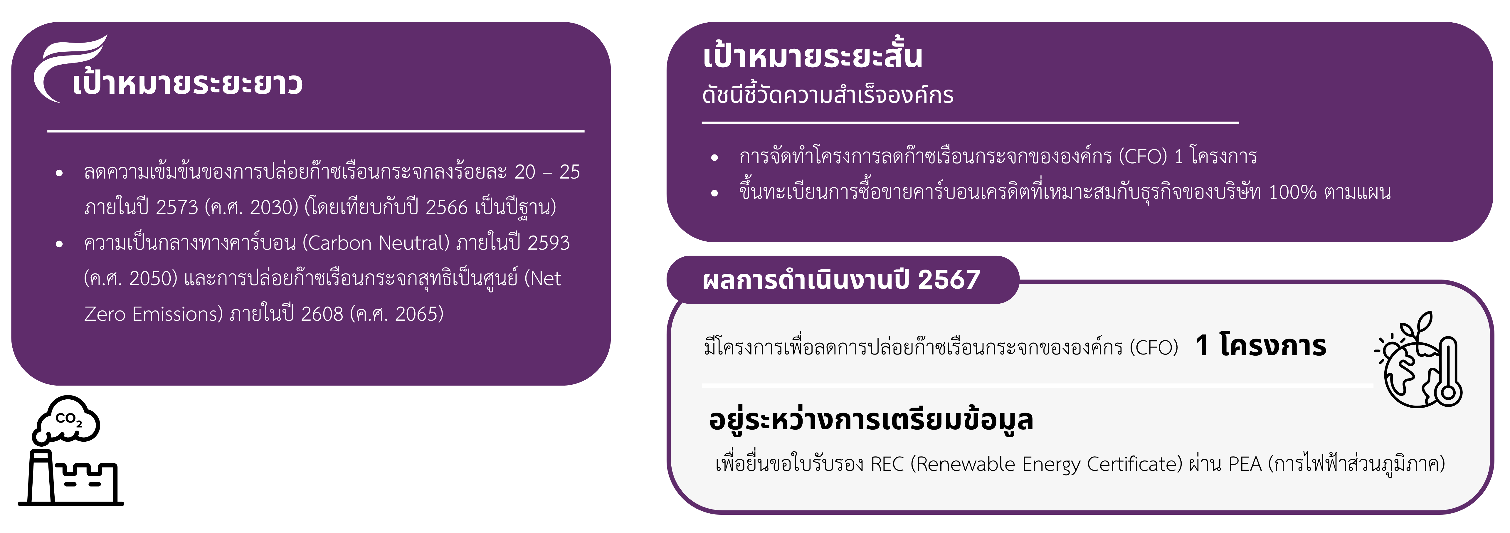 - การลดการปล่อยก๊าซเรือนกระจกจากกระบวนการผลิตและเพิ่มประสิทธิภาพการใช้พลังงานในองค์กร