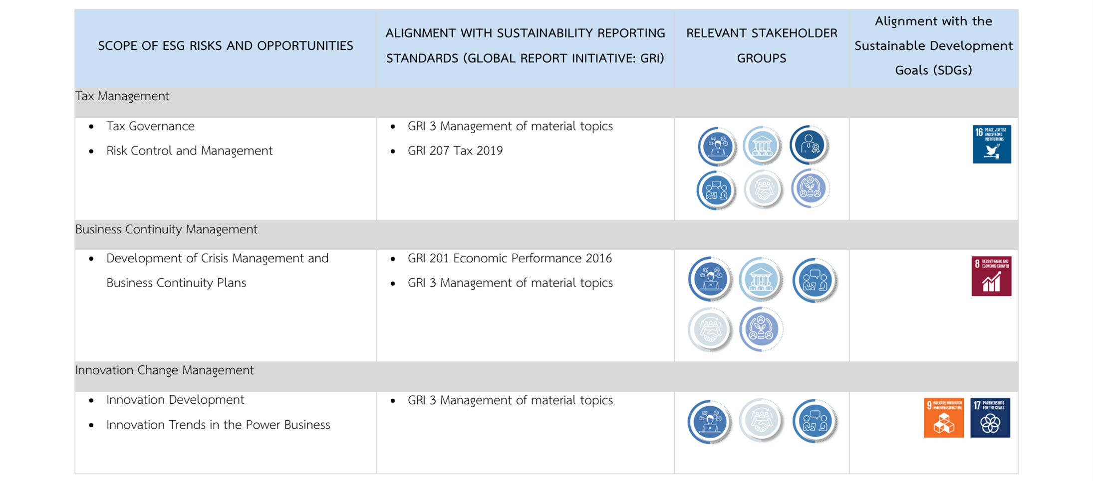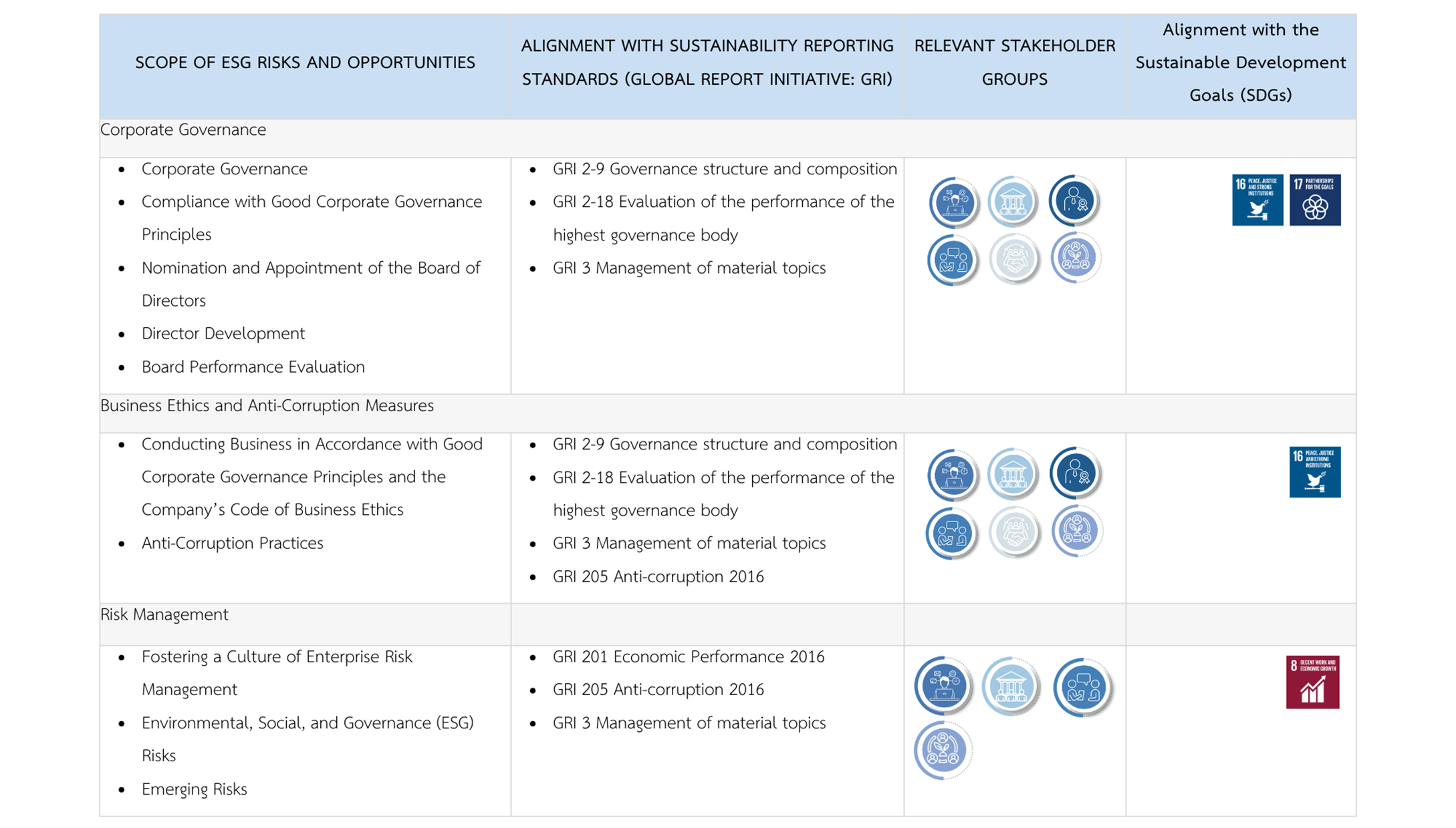 Once validated, the material topics are presented to the Corporate Governance and Sustainability Committee and the Board of Directors for review, approval, and endorsement. Following approval, the Company develops its sustainability action plans and enterprise risk management plans, both of which are reviewed by senior management, with the Chief Executive Officer serving as the approving authority. This ensures the Company can meet stakeholder expectations and continuously drive sustainable development forward.