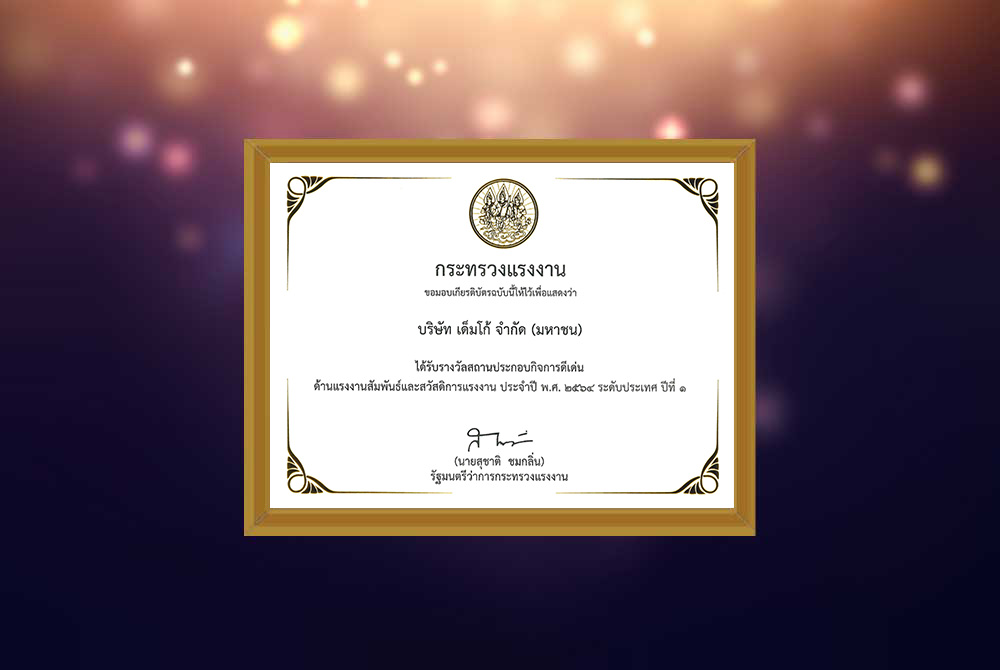 ได้รับการรับรองมาตรฐานระบบการจัดการด้านความปลอดภัย ฯ (T-OSH)
