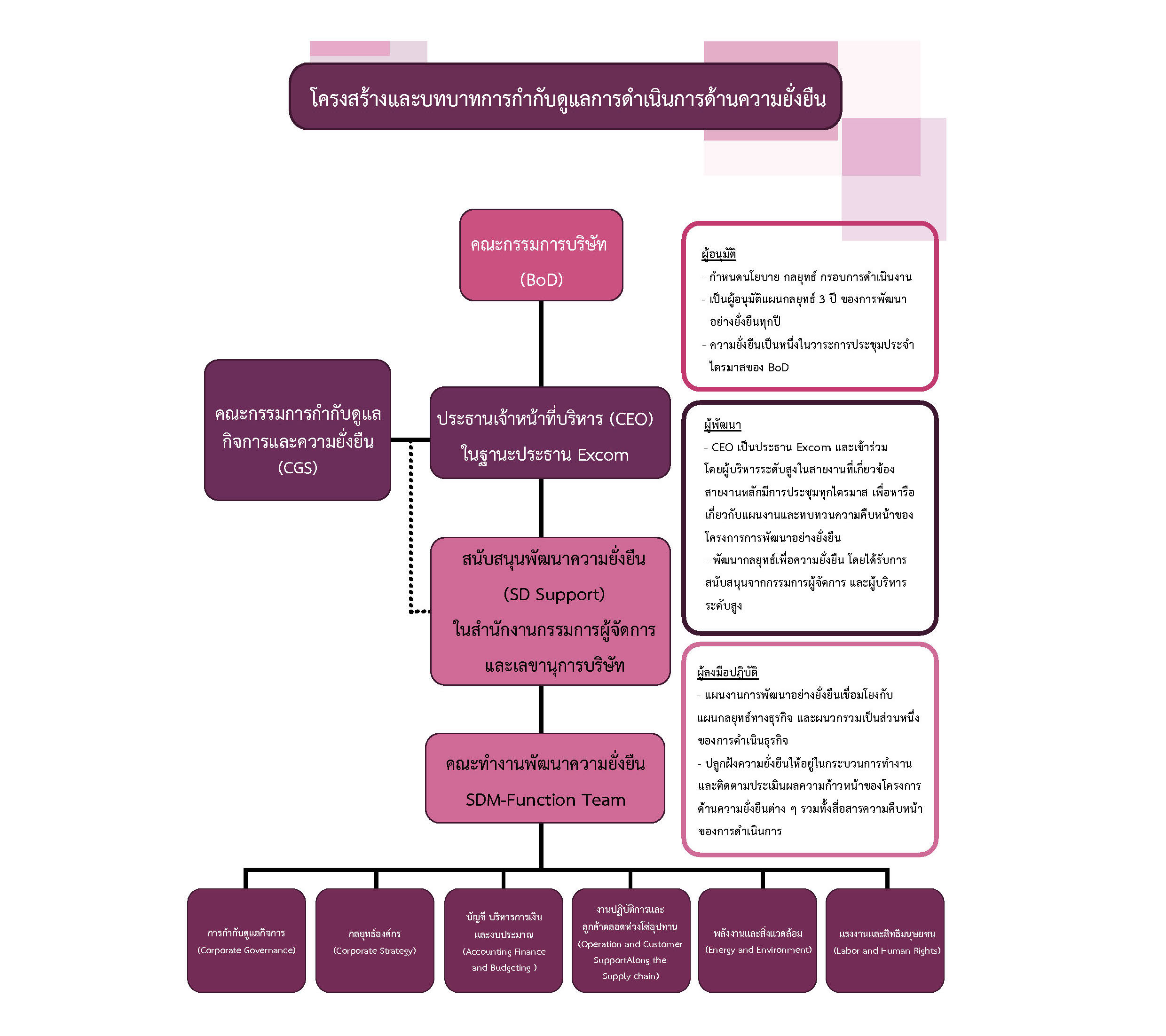 โครงสร้างและบทบาทการกำกับดูแลการดำเนินการด้านความยั่งยืน