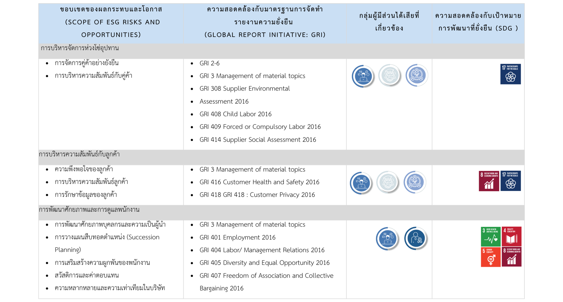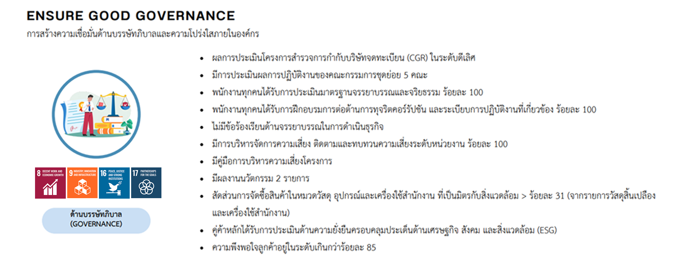 การกำหนดเป้าหมายและการดำเนินธุรกิจที่สนับสนุนเป้าหมายการพัฒนาความยั่งยืนขององค์การสหประชาชาติ (Sustainable Development Goals : SDGs)
